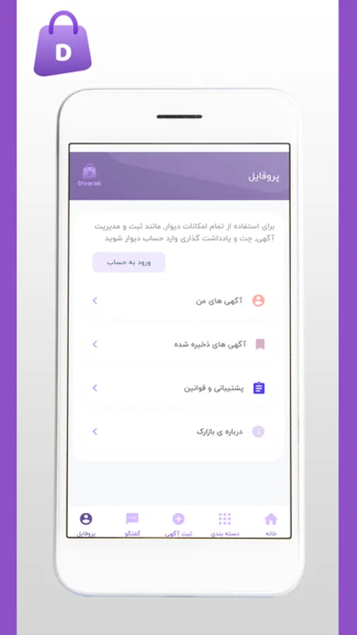 Divarak is an app developed for all types of users, especially Iranian people who live abroad. The main purpose of the app is to provide a platform to connect people to buy and sell their goods and promote their services.Divarak is designed to help you find what you need from the people who don't need the item. They publish an ad for the item and you can search for that among other goods.But it's not limited to goods; you can also get the services you need through this app. And if you're good at providing a service, you can use this app to promote yourself and maybe find a customer.The classification system in Divarak works well to make it easier to use. The categories are consisting of:Properties: any form of land or house you may need. For example, you can search for apartments, offices, lands, houses, stores, villas, etc.Vehicles: need a second-hand car? You got it. Need a brand-new motorcycle? You got it. Wanna rent a car for a couple of days? Check it here.Digital and electronic devices: in Divarak you can search for your next cellphone, tablet, or laptop. You can also find a wide variety of PCs, PlayStations, Xboxes, and media systems.Home appliances: what do you need after getting a new house? Yes. Stuff. On this platform, you can search for kitchen utensils, carpets, furniture, decorative items, etc.Services: you can easily reach a wide range of different services you may need. If you need to repair your house, you can find the provider here. If you have a ceremony and you need a hand, here you can look for it. Does your company need a consultant? Here you can find a match. And it's not all of that.Personal stuff: well, there are times when you find an item not useful for you anymore, but you believe someone else can use it better and you can have a bunch of bills instead of the item. So, why not? You can sell your personal items in Divarak and you can also buy what you need for less money. Everyone is happy with the result.Social affairs: Do you want to feel better about yourself? You need to be a volunteer for an activity or charity. Where can you find one? Divarak.Business and industry: if you're low on budget and you want to establish a company, you can consider using second-hand machinery and equipment. You can find many options in Divarak.Employment and requirement: finding people to get your job done is not an easy task. Of course, there are other platforms you can use to find them, but if you need a more targeted platform, you can count on Divarak.
