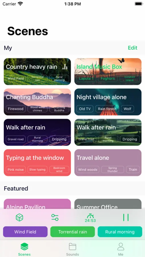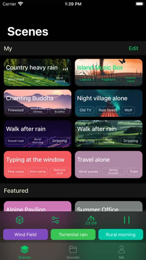 Sleep Sounds is based on this principle. Different types of sound materials are carefully selected. These sound files can be freely selected in the software, and they can be individually or combined into different sound scenes. You can also adjust the volume and size of a single sound file. Play speed and pitch. In this way, you can finally adjust the sound scenes that are most suitable for you according to your own feelings, and let these sound scenes serve as the background white noise for different scenes such as concentration, meditation, work, sleep, etc., so that you can reach a better state.