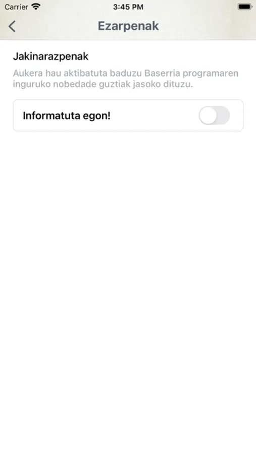 Euskal Telebistako “Baserria” realityaren APP ofiziala da hau. Telebistan ikusten denetik haratago joango gara aplikazio honekin: Programan ikusten ez diren edukiak ikusteko aukera emango du, parte-hartzea ahalbidetuko du eta atal guztiak nahieran ikusi ahal izango dira bertan.