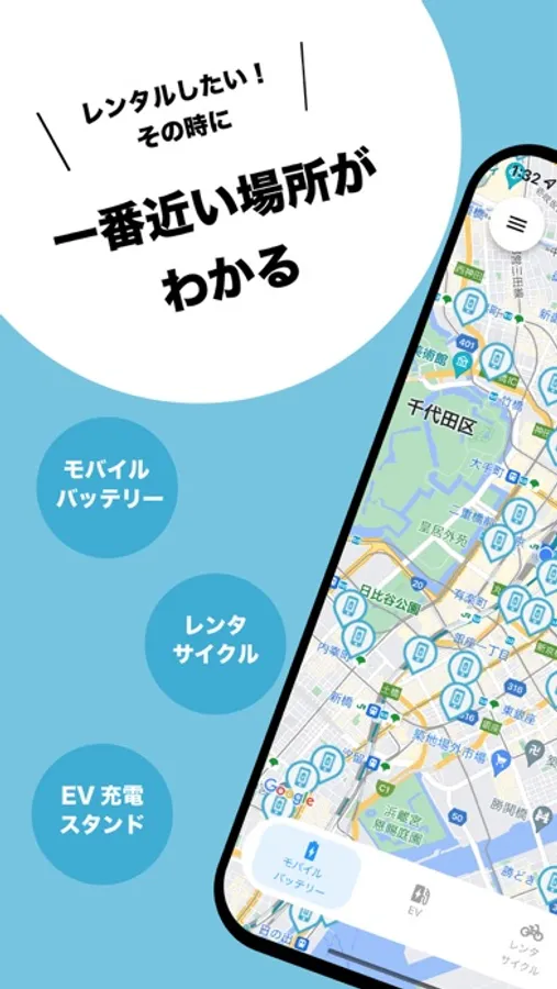 チャージマップ(ChargeMap)は、日本全国に設置されたバッテリーシェアサービスやシェアサイクル・レンタルサイクルサービス、EV充電施設(CHAdeMOとTESLA)の検索アプリです。