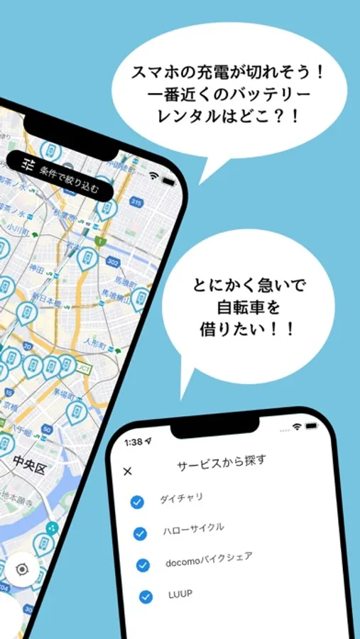 ・スマホの充電が切れそう!一番近くにあるバッテリーレンタルサービスはどこ?