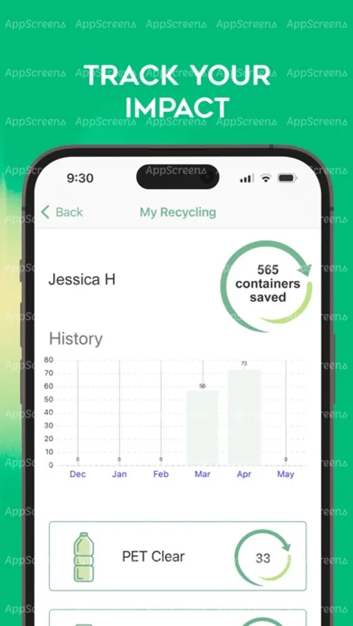 Container Savers in Action - Track the number of 10¢ containers you’ve saved, the money you’ve earned, and your charitable donations.