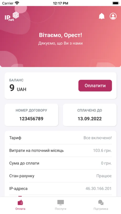 Додаток My IPnet - це можливість швидко і легко скористатися функціями особистого кабінету користувача: