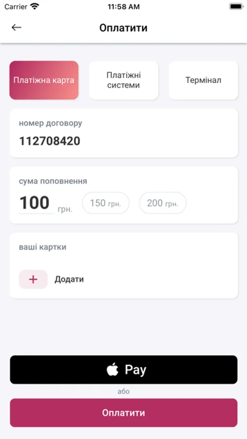 - Поповнити рахунок