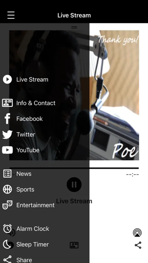 Please listen to the station via this App. You will enjoy great music selected by Ben Sims, inspiring interviews, and super fun and mind-blowing live shows by Poe!