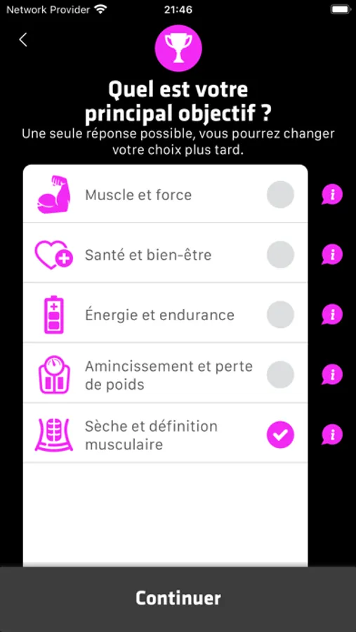 Sport / Nutrition / Planning / Cours / Objectifs / Tchat et Notifications push .