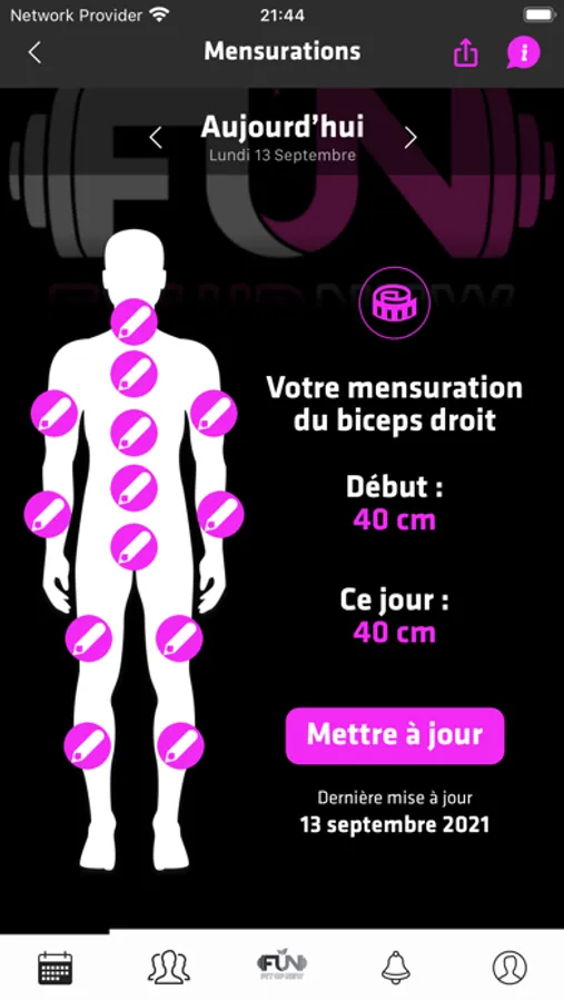 Recevez des notifications push individuellement ou groupé (informations et conseils sport, nutrition, santé, rappels de vos rdv, des cours, etc..