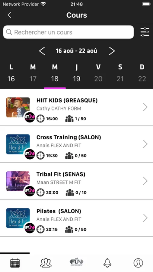 Réservation de votre place sur nos évènements, nos cours collectifs ou individuels de Fitness, nos lives, nos visios, à distance ou en présentiel...