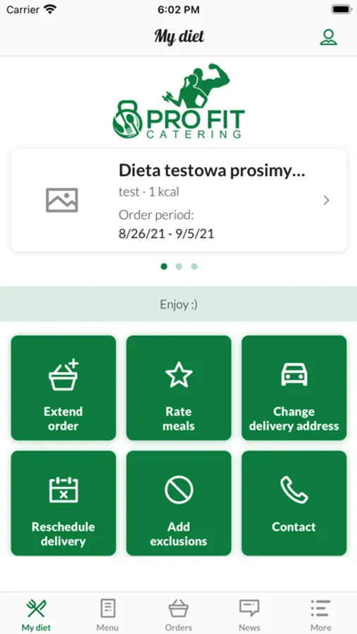 Pro Fit Catering application is intended for diet catering clients and is used for managing the purchased diet and communication with catering. The application will allow you to manage your diet conveniently from your phone without a necessity to visit the catering website or call customer support. All necessary functions are
