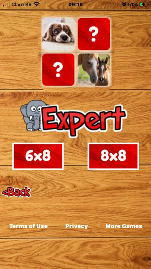 Train in a fun way and stimulate your brain with the game cards by finding the pairs of animals.