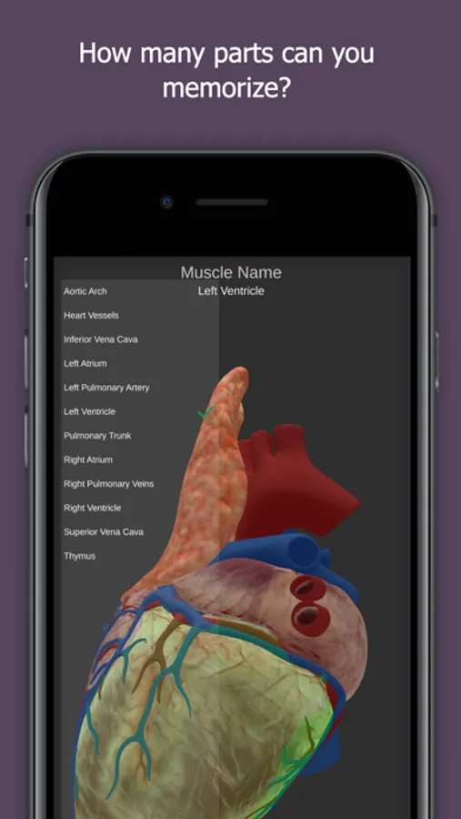 See the human heart and learn all the major areas in "Explore Mode" and "Check Your Knowledge" mode.