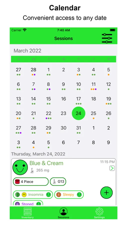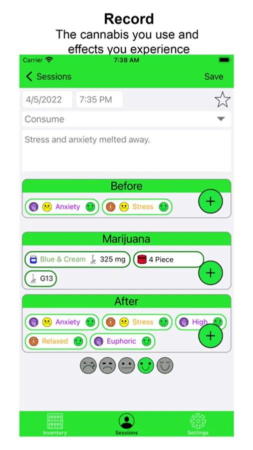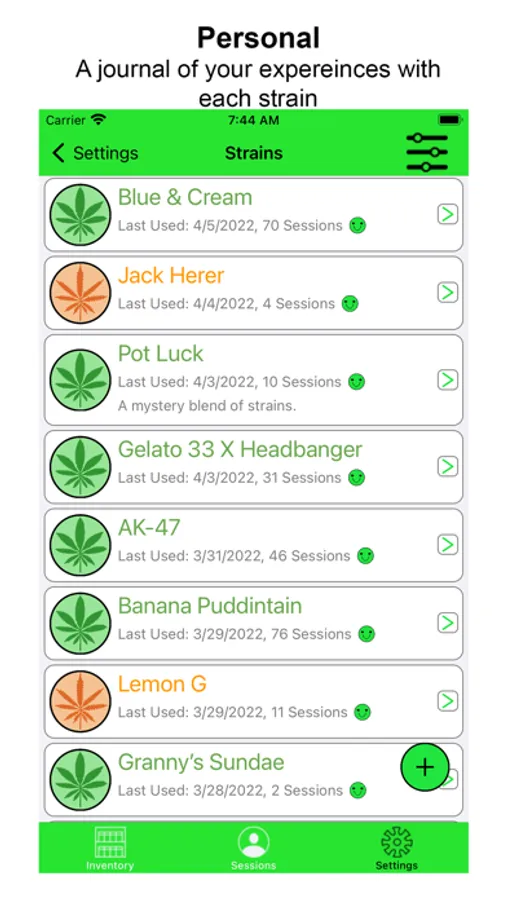 It's High Time is a Marijuana inventory and usage journal. Designed for both medical and recreational users, It’s high time allows the user to keep track of the effects provided by each strain, along with how each strain effects your mood and symptoms for issues where marijuana is commonly used for treatment.