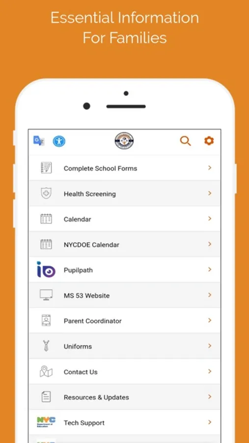 This app is specially designed for MS 53 families and staff. It will allow you to access the most important information regarding the school, such as grades, schedules, or contact information.