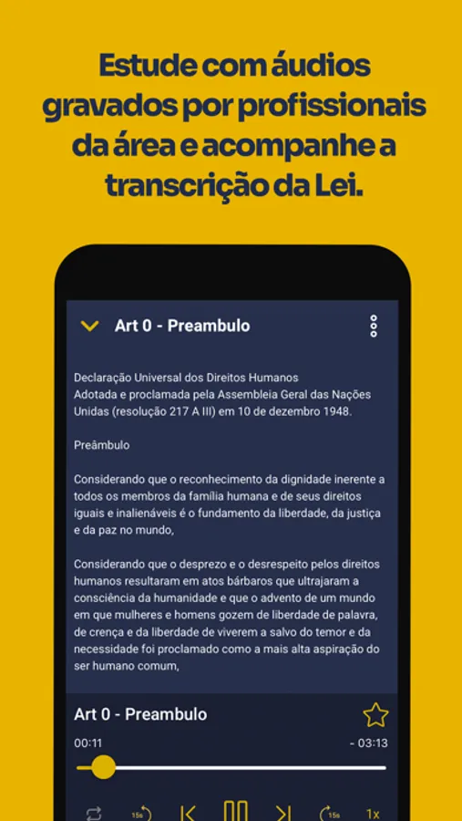 - Acompanhe a transcrição do áudio das leis enquanto estuda e evite qualquer dúvida.