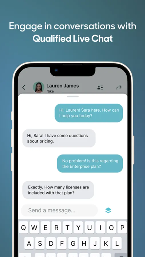 Qualified’s mobile app lets you instantly alert and enable sales reps to have real-time conversations with VIP website visitors even when they’re on-the-go.