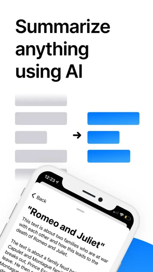 Use AI to summarize any text. Summarize documents and links from the share sheet or by copy-pasting into the app.