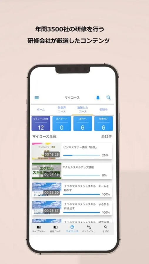 3) Customizable My Course: Users can add any of the courses they find in the Library to their own My Course for their self study. Courses are also able to be added from the users' company administrators.
