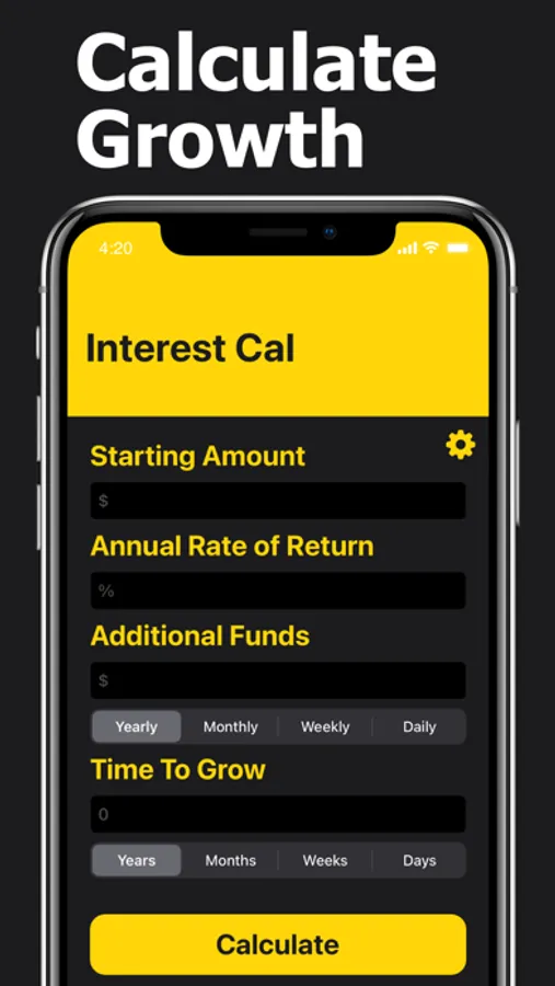 "Compound Interest Cal" is a fast and easy way to calculate potential growth of investments (compound interest)