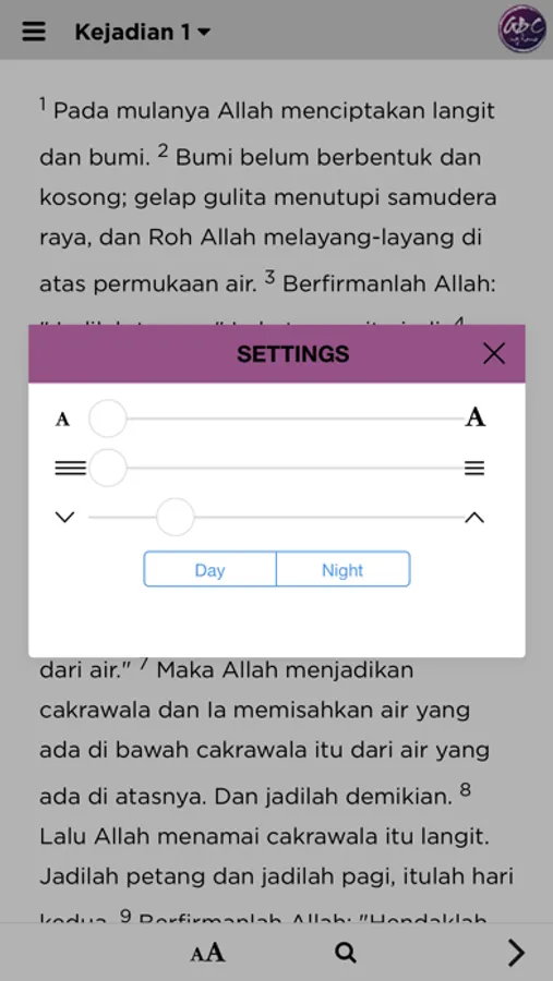 - Bible: keyword search, Easy Reading (Adjust font, text size, and contrast for bright or low-light)