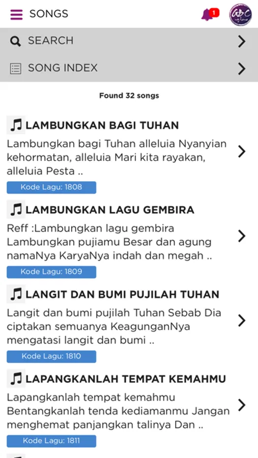 - Song lyric search to make user / church congregation easy to find worship song lyric quickly.