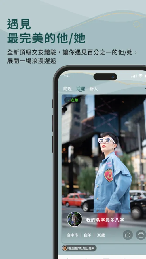 我們是一款專為頂尖人士所推出的互動式社交型APP,旨在為具有熱情、自信、魅力、富有以及願意享受精緻高端生活的您,提供最為流暢有質感的互動及交友體驗。我們將憑藉最準確、可靠的驗證流程以保證使用者質量,並搭配最堅強的系統開發及維護團隊,藉此在眾多交友軟體中脫穎而出。