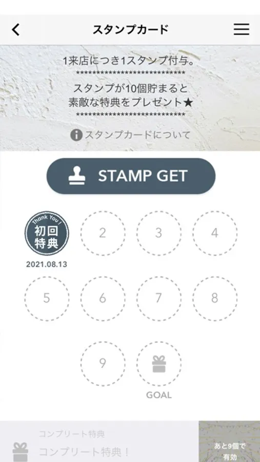 たくさん貯めていただくと次回使える特典をご用意しております。