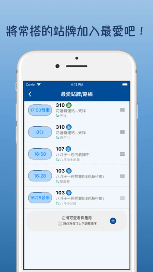 最愛站牌 - 加入您最常搭乘的站牌 !