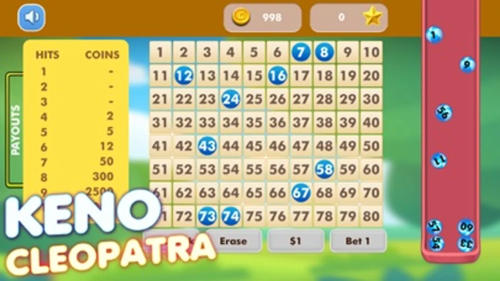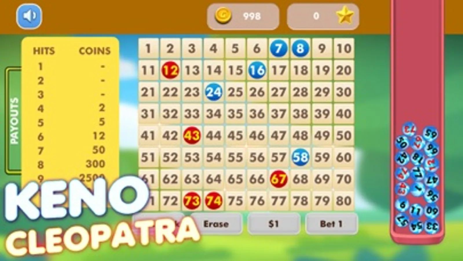 Our free Keno Games is classic keno reimagined with a twist of modern graphics. To start, we give you a ton of free coins to bet with and enjoy watching the balls drop. Great way to simulate keno games and test your lucky numbers.