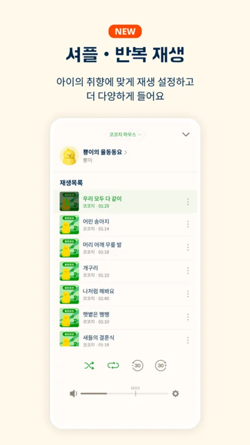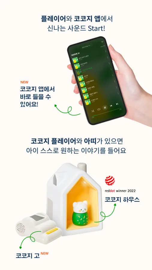 코코지 앱으로는 물론, 아이가 스스로 선택하고 즐기는 코코지 플레이어로도 들을 수 있어요.