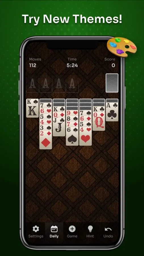 ◆ Choose between various attractive designs of Card backs and fronts to brighten up the dealing table of this free Solitaire card game