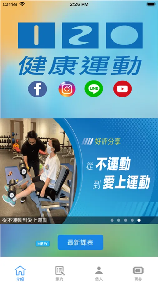 6.首頁(社群連結、官網、最新課表、最新資訊、最新優惠)