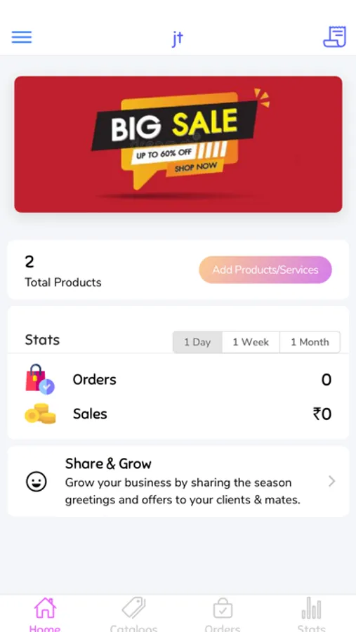 1. Enter Business Name, email address, Phone number, shop address and start adding your products/catalogs.