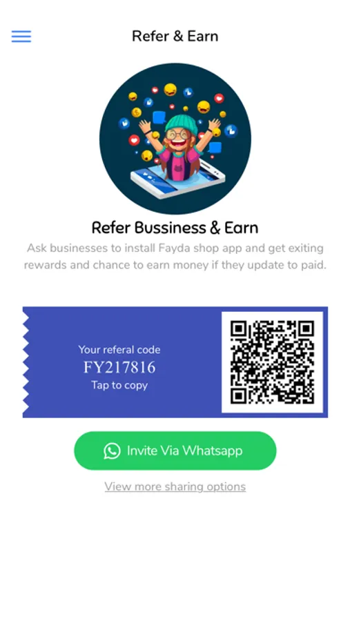 Fayda Shop allows you to share your digital catalogues (catalogs) on different social media apps such as Whatsapp, Facebook, Instagram etc.
