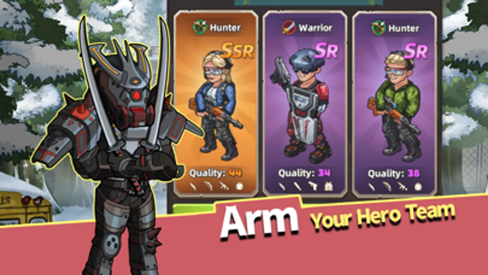 BATTLE MONSTERS: Send out parties of Heroes to battle mutant monsters and zombies and gather valuable crafting materials!