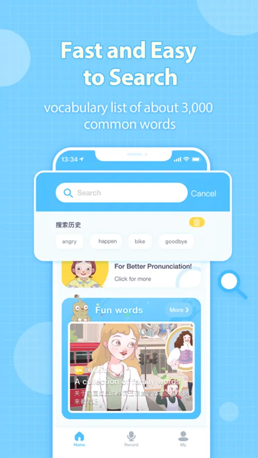 - Vocabulary list of about 3000 common words for primary and secondary school with fast and easy search functions, covering various language standards including CEFR A1-A2, Cambridge, etc.;