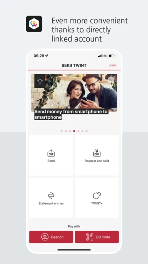 Turn your smartphone into a wallet by downloading the BEKB TWINT app to your mobile device. You can then make cashless payments or transfer money from smartphone to smartphone.