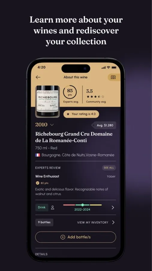 * Simply scan wine labels and add the bottles to your inventory (no more barcodes)