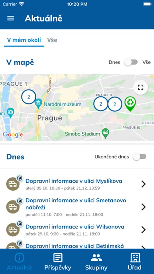 Mobilní aplikace pro obyvatele Hl. m. Prahy. Uživatel je jejím prostřednictvím cíleně informován o aktuálním dění v oblasti, kterou si sám v aplikaci nastaví, ať už jde o bydliště, nebo jiná zájmová místa. Je informován o mimořádných událostech, haváriích , svozu odpadu, dopravních omezeních, ale i kulturních, společenských, sportovních akcích, zkrátka o dění v jeho okolí.