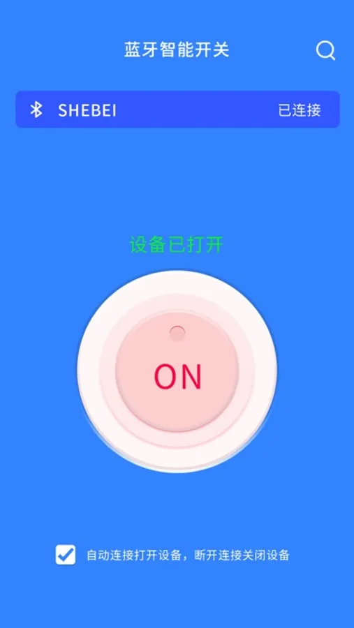 通过APP可以自动连接蓝牙且开启设备,断开蓝牙连接关闭设备。