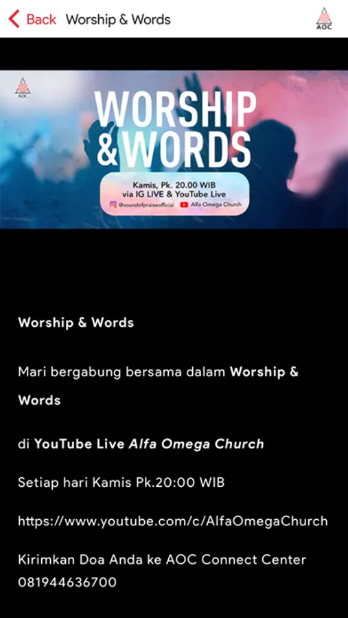 My AOC ( Alfa Omega Church ) Mobile App provides Bible, Articles, News, Magazines, Videos: