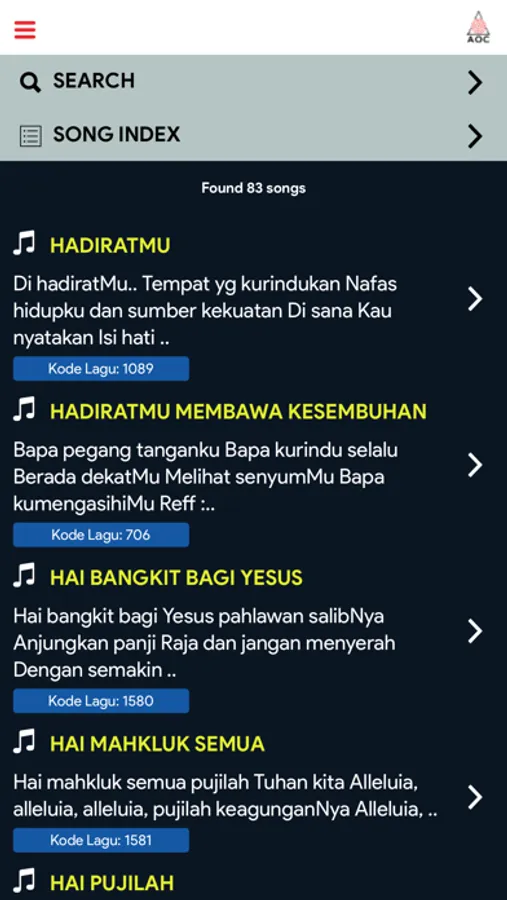 - Song lyric search to make user / church congregation easy to find worship song lyric quickly.