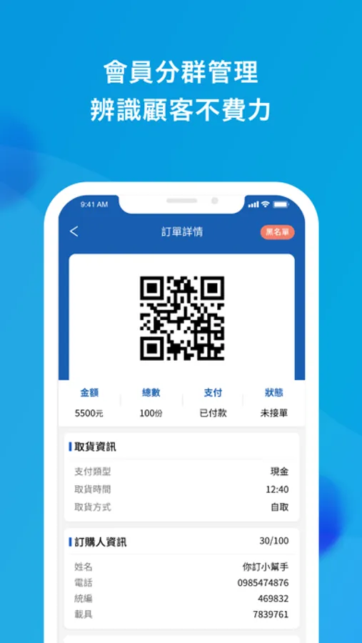 3.會員管理 : 會員分群名單功能,如 VIP、黑名單等。