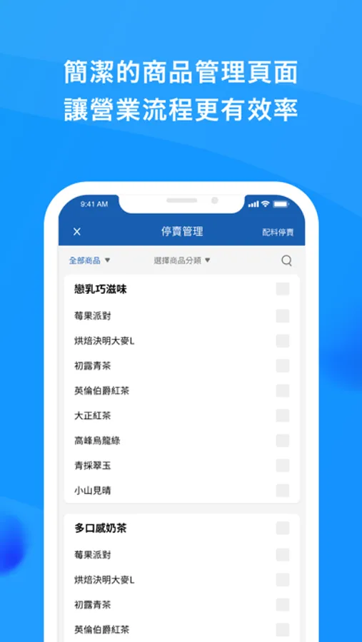 1.門市管理 : 門市營業狀態切換、營收報表查看等。