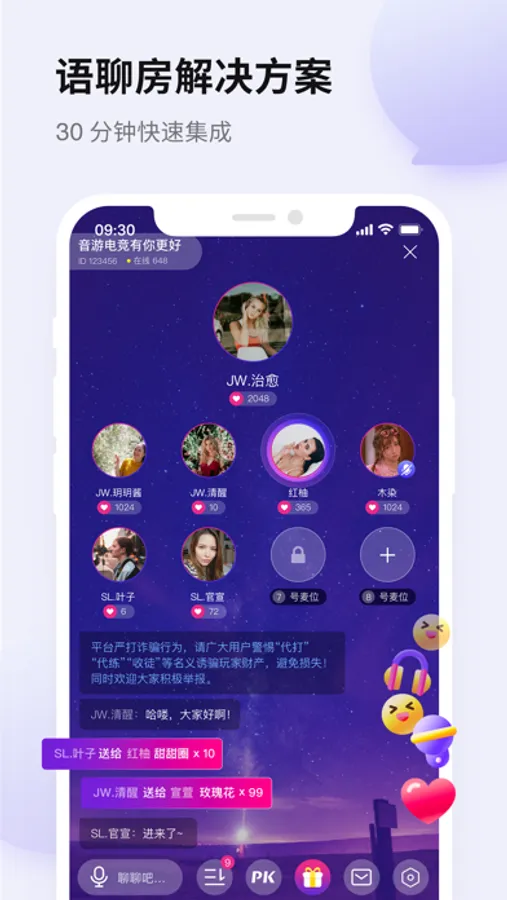一行代码,30分钟帮助您完成商业化可用的语聊房搭建,极速且高质量达到上线可用。