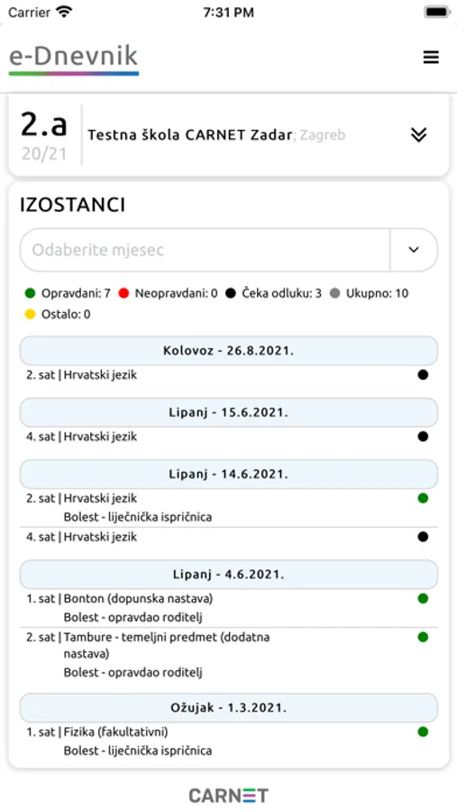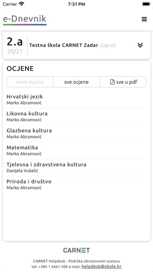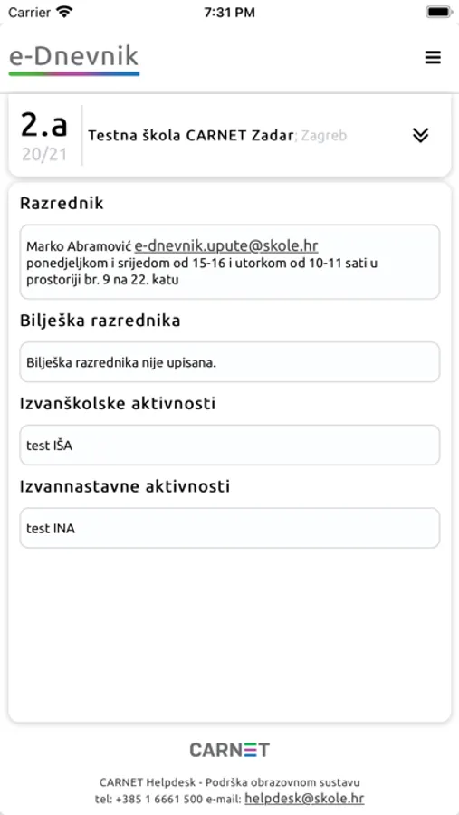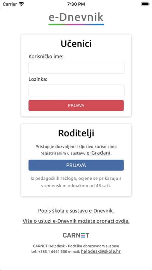 Aplikacija učenicima i roditeljima omogućava da na svojim mobilnim uređajima mogu pregledavati podatke o ocjenama i bilješkama koje su nastavnici upisali u e-Dnevnik. Korisnici u aplikaciji imaju uvid u upisane izostanke, vladanje, pedagoške mjere, bilješke razrednika, raspored sati te raspored ispita tijekom školske godine. Dostupna je i funkcionalnost pomoću koje je moguće primati obavijesti o novostima kao što su upisani novi izostanci ili nove ocjene.