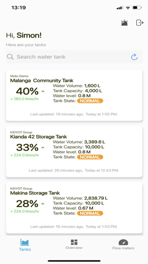 With any of the Mobi-Water sensors or smart meters installed in your water network, you will be able to monitor your water levels, track and receive alerts on your water consumption and know how much water you have left in your tank/reservoir.