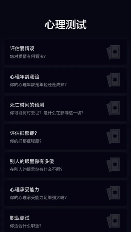 If you want to understand your inner world, if you are confused and do not know how to choose, different types of tests to better understand yourself, including occupation, personality, family, love, etc., psychological tests will give us the answer, to explore your true Inner heart
