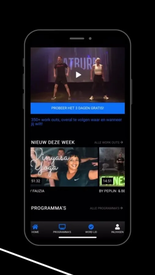 Kies jouw favoriete work out, stream deze naar jouw TV, telefoon of tablet en doe mee!