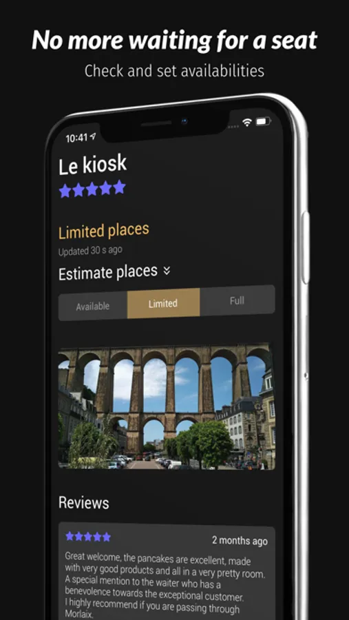 These availabilities are updated in real time by Panoptes - Bars & Restaurants users, including you!