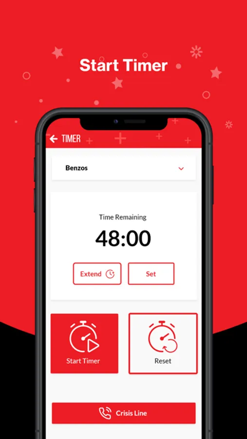 Quick access to 911, and crisis line for emergency support.